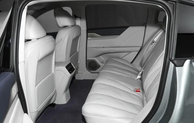 这车有五米多长,轴距三米,后排空间大得能翘二郎腿,中间地板是平的,坐三个人也不挤。门是无框的,还带隐藏式把手和双层玻璃,关门声音特别闷实,外面吵声音进不来。坐在里面感觉挺安静,空调开到最大也没啥噪音感。后备箱也够用,后排还能放倒,拉个自行车或者露营装备完全没问题。
