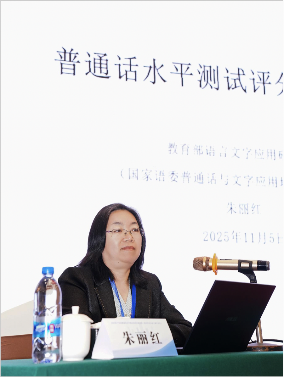 教育部语言文字应用研究所(国家语委普通话与文字应用培训测试中心)副研究员、中国社会科学院大学副教授朱丽红为学员们详细阐述了《普通话水平测试评分问题解析》。她凭借丰富的评测实践经验,围绕普通话水平测试的评分系统、机测第四项及全四项人工评分实际解析,进行了精准讲解与实例演示,有效助力学员们攻克评分难点,提升研判能力。